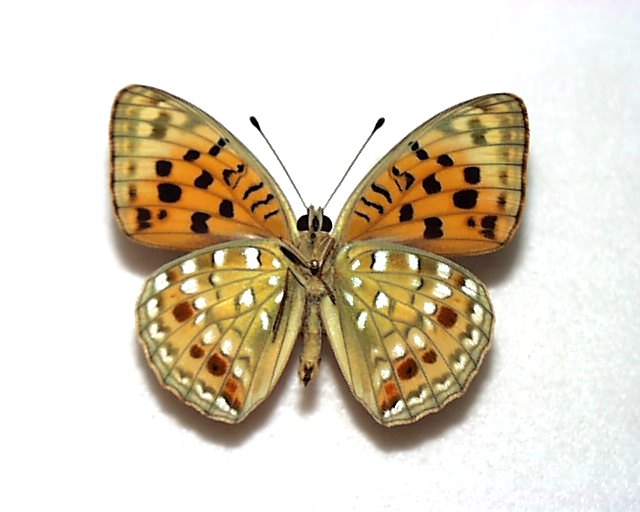 オオウラギンヒョウモン ♂産地:長崎県・東彼杵町 Jn37821¥1,500 (税込) 1990年6月 羽化 開長61㎜ 現在は採集禁止 在庫1個 オオウラギンヒョウモン ♂産地:長崎県・東彼杵町 Jn37821個 カートに入れる 商品コード: Jn37821 カテゴリー: タテハチョウ科 説明 説明 和名 オオウラギンヒョウモン 学名 Fabriciana nerippe nerippe 産地 長崎県・東彼杵町 品質 A 雌雄 ♂ 由来 飼 育 状態 裏面展翅 価格 1500円 記号 番 商品特徴 関連商品 ヒオドシチョウ ♂産地:神奈川県・横浜市 Jn11231 ¥1,000 (税込) ミスジチョウ ♂産地:北海道・岩見沢市 Jn45021 ¥500 (税込) ヒオドシチョウ ♀産地:長野県・飯田市 Jn11352 ¥1,300 (税込) ホシミスジ ♂産地:埼玉県・秩父市 Jn47231 ¥900 (税込)