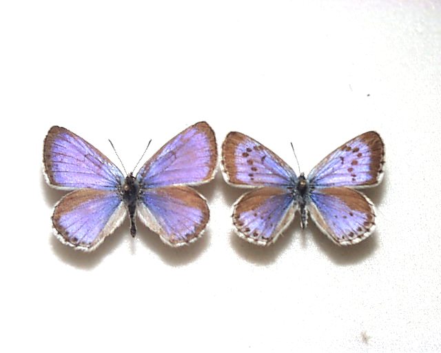1986年5月 採集 全体的な色褪せ感・少しのスレ・♀右アンテナ欠損 有 開長 ♂36mm・♀34mm